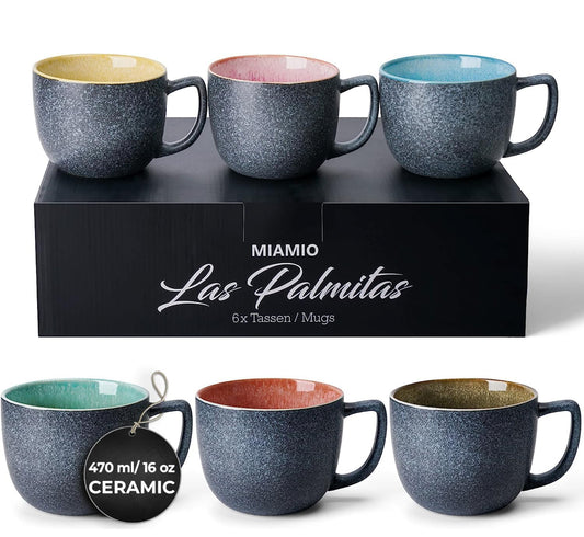 Juego de 6 tazas de café de 16 oz/gres grandes