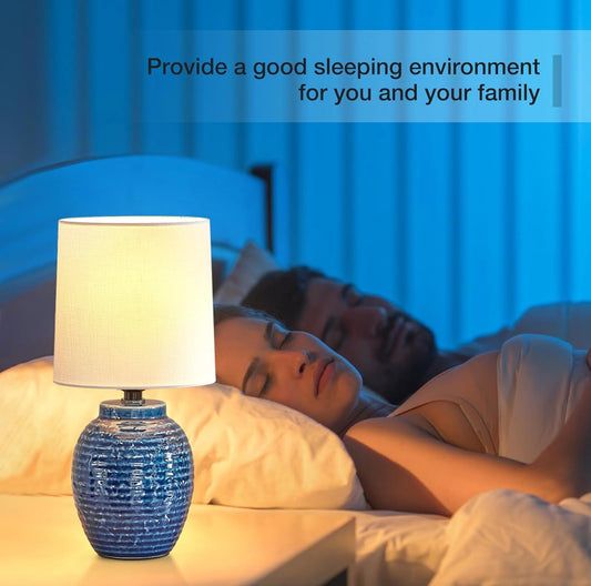 Juego de 2 lámparas de mesa pequeñas de 13.75 pulgadas, lámpara de casa de campo, lámpara de mesa clásica de cerámica para dormitorio, sala de estar, mesita de noche, oficina