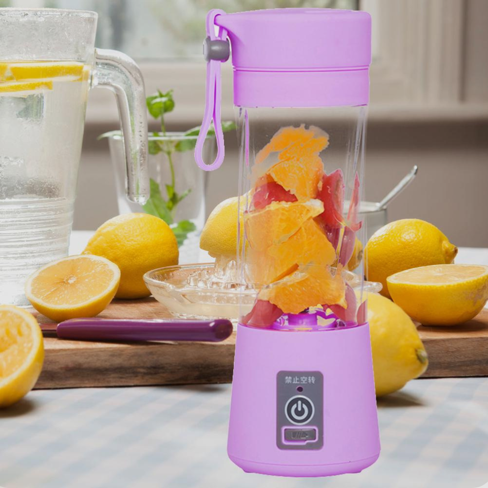Licuadora portátil, mini licuadora eléctrica USB para batidos y batidos, jugo, 12.8 fl oz, seis cuchillas