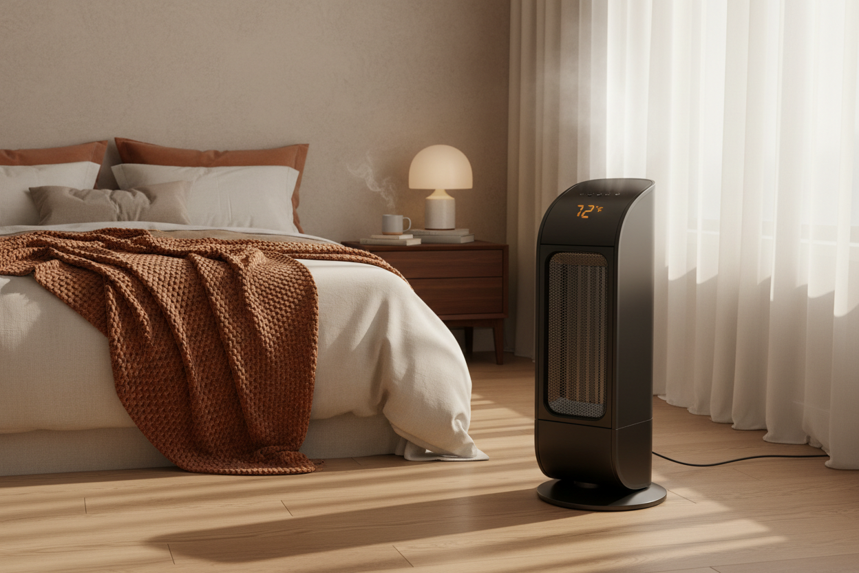 Lleva aire caliente a cada rincón de tu habitación. La oscilación gran angular de 80° se extiende para cubrir toda el área. Este calentador portátil está diseñado para sentarse junto a tus pies para calentar rápidamente habitaciones pequeñas a grandes, incluyendo oficinas, dormitorios y salas de estar en días fríos. Cobertura de calefacción: 200 pies cuadrados
