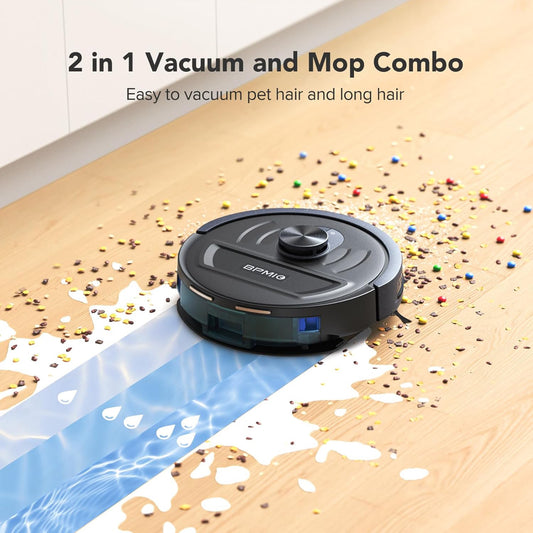 BPMIO Robot aspirador y trapeador combinado de succión máxima de 4500 Pa con mapeo inteligente de navegación LiDAR, tiempo de ejecución de 145 minutos, programa de limpieza personalizado