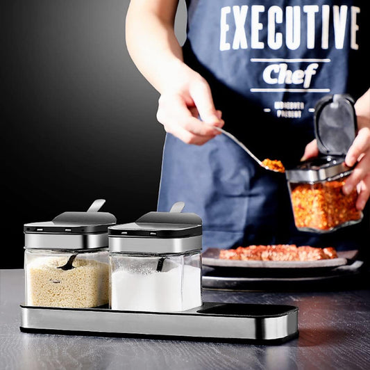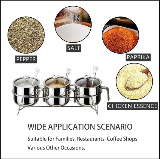 Antetek A-XINTONG - Juego de 3 cajas de condimentos con tapas y cucharas de acero
