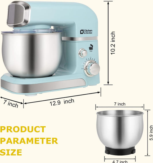 Kitchen in the box Batidora de pie, pequeña, eléctrica, alimentos, 3.2 cuartos de galón, 6 velocidades, ligera y portátil