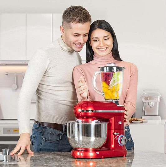 Increíble potencia para amasar pan; el tazón de acero es enorme y los accesorios de batido (globo, pala y gancho) se sienten muy profesionales. La licuadora de vidrio es robusta y el molino de carne funciona de maravilla para hacer mis propias hamburguesas en casa. El control de velocidad progresivo permite empezar suave para no salpicar.