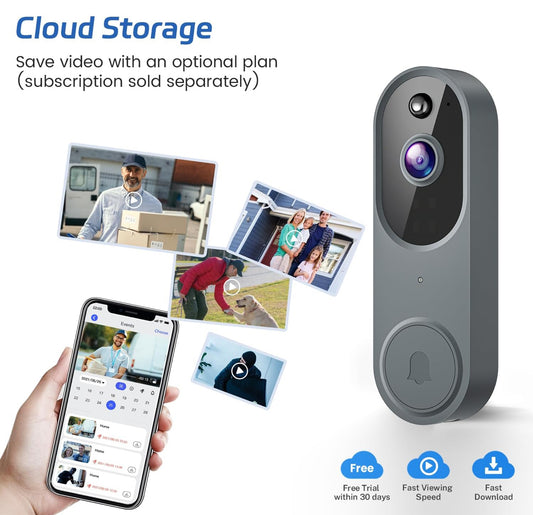 Cámara de timbre de video inalámbrico 1080P con timbre, visión nocturna, solo Wi-Fi de 2.4 GHz, detección humana inteligente con inteligencia artificial