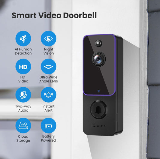 Cámara de timbre inalámbrica, cámara de video inteligente con timbre, detección humana AI, audio bidireccional