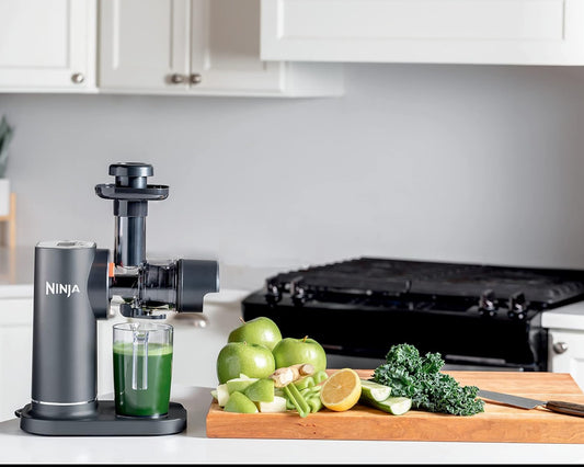 Ninja JC151 NeverClog - Extractor de prensado en frío de jugos, potente exprimidor lento eléctrico con control total de pulpa