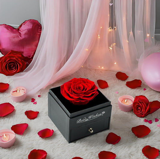 BLOSSBLISS - Rosa roja preservada con collar, juego de regalo de flores