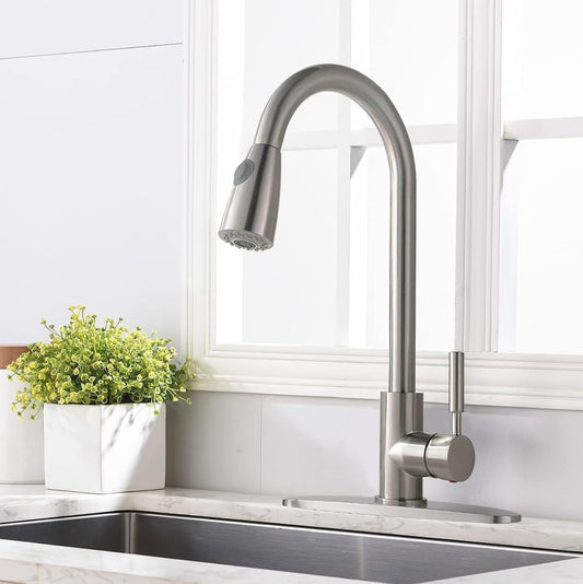 Tohlar Grifo de cocina con rociador extraíble, grifo de fregadero de cocina de níquel cepillado