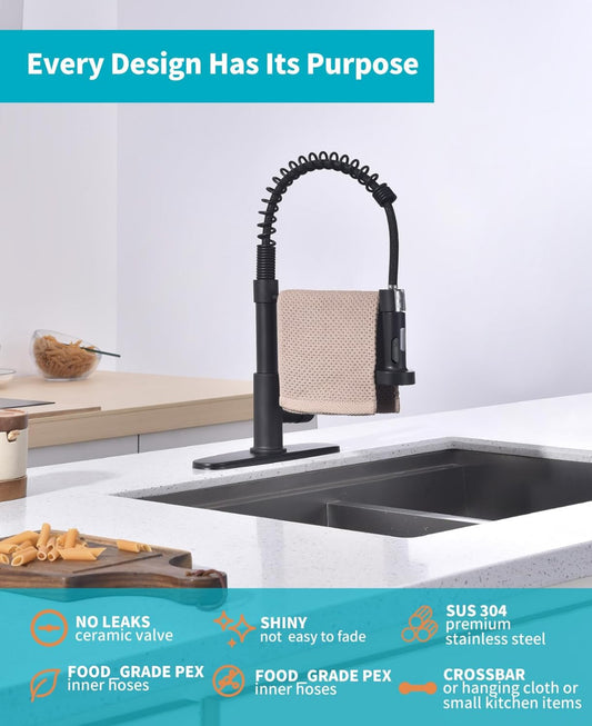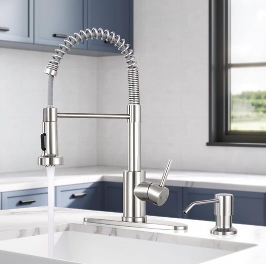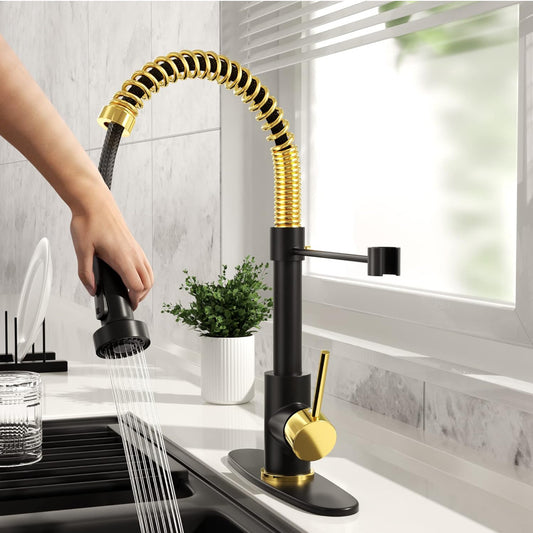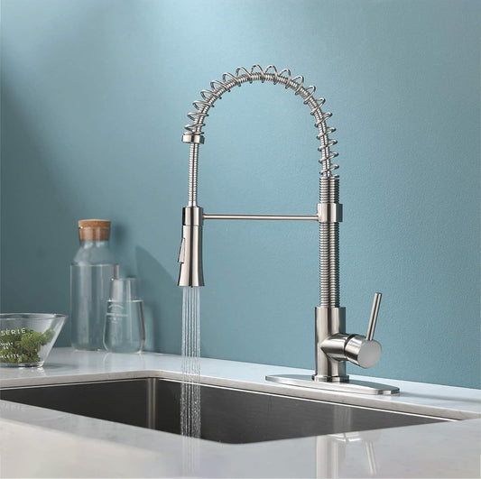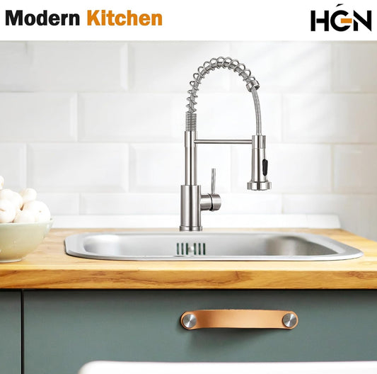 HGN Grifo de cocina con rociador extraíble, grifos comerciales de fregadero de cocina de resorte de una sola manija