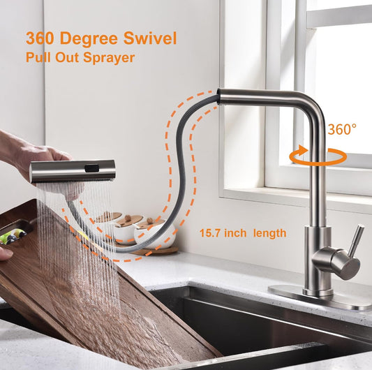 Comllen Grifo de cocina de níquel cepillado con rociador extraíble, grifos de cocina de acero inoxidable