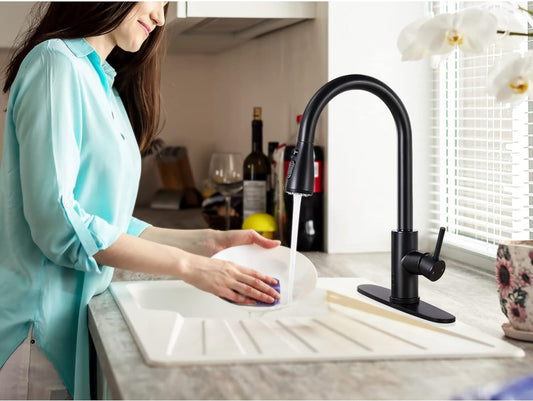 Grifo de cocina sin contacto con rociador extraíble, negro de arco alto de una sola manija, grifo de fregadero de cocina
