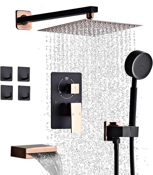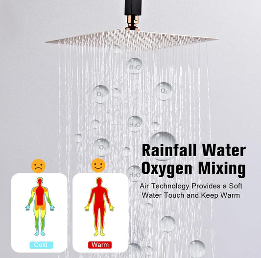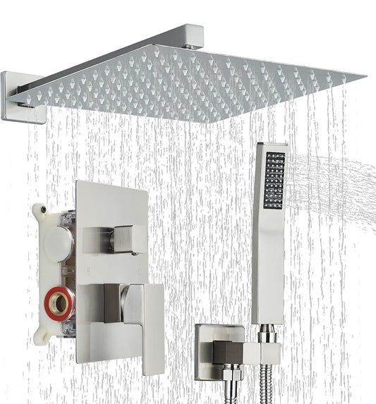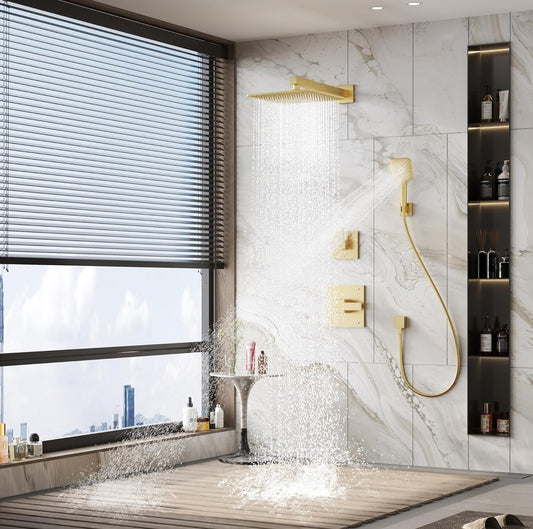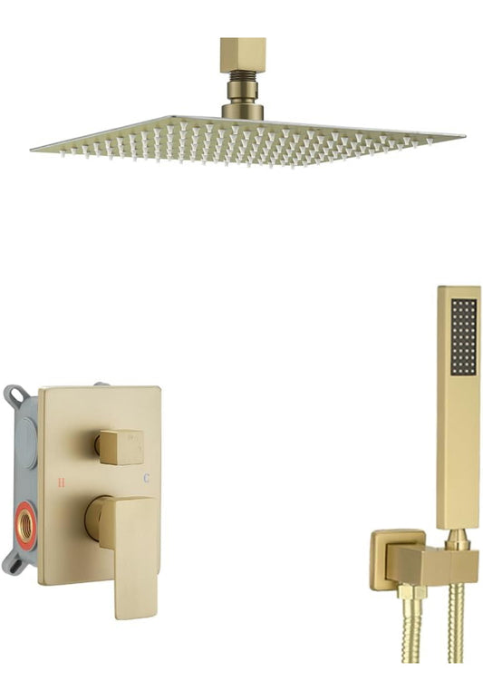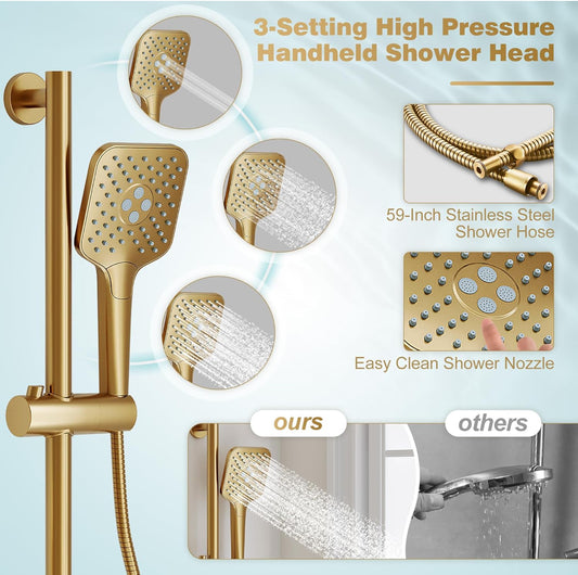 Gabrylly Sistema de ducha de 12 pulgadas, juego de grifo deia de lujo con cabezal de lluvia y ducha de mano