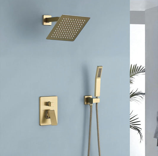 Grifo de ducha dorado cepillado de 8 pulgadas, ducha de lluvia y ducha de mano