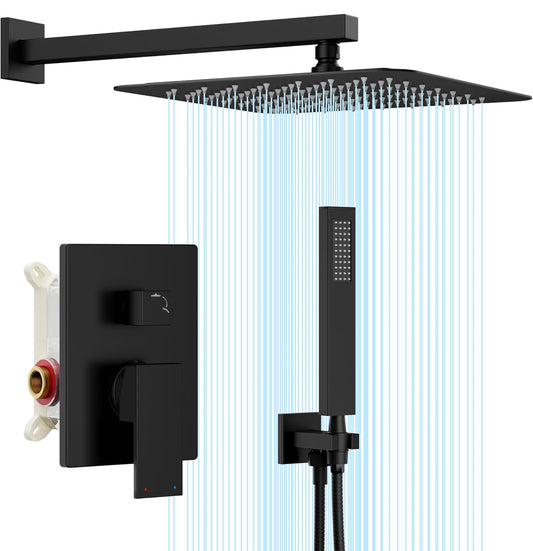 Sistema de ducha de montaje en techo de 12 pulgadas, mezclador de lluvia negro mate, juego combinado de ducha de alta presión