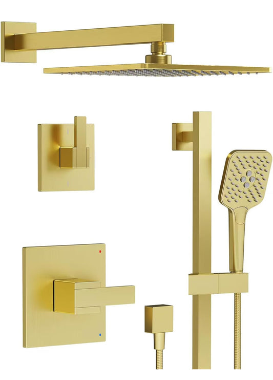 Gabrylly Sistema de ducha dorado, juego de grifo de ducha con cabezal de ducha de acero inoxidable de 10 pulgadas