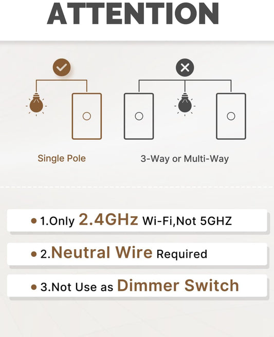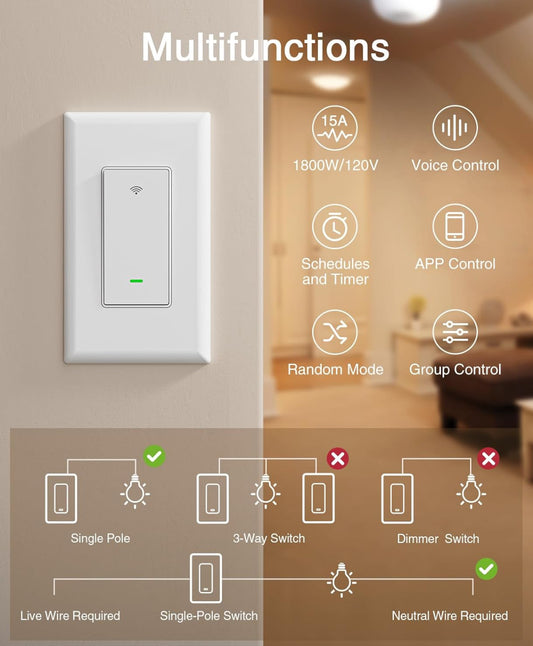 GHome Smart Interruptor, interruptor de luz Wi-Fi inteligente, Paquete de 4 pcs