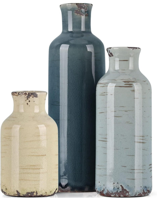 Abbittar Juego de 3 jarrones de cerámica, estilo minimalista para decoración rústica del hogar