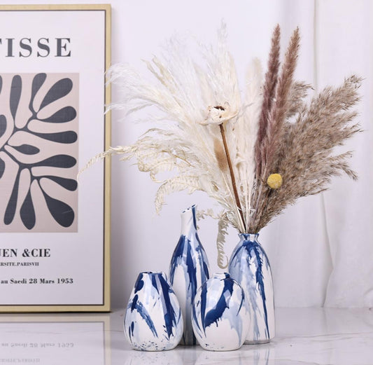 Juego de 4 jarrones de cerámica azul y blanco, modernos jarrones decorativos de color azul marino