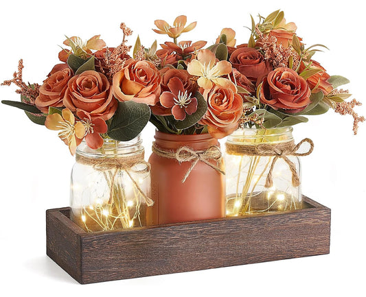 Mkono Centro de mesa de centro de mesa con 3 frascos de flores