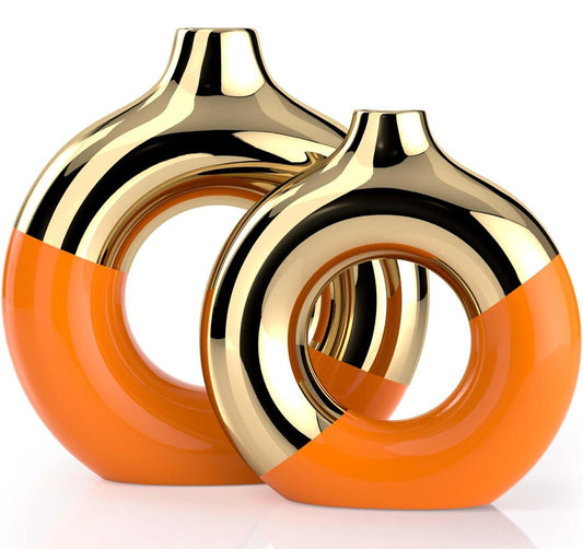 XMGZQ Jarrón dorado, juego de 2 jarrones de cerámica