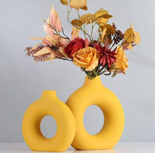 XMGZQ Jarrón, jarrón de cerámica, florero de rosquilla, decoración minimalista y moderna