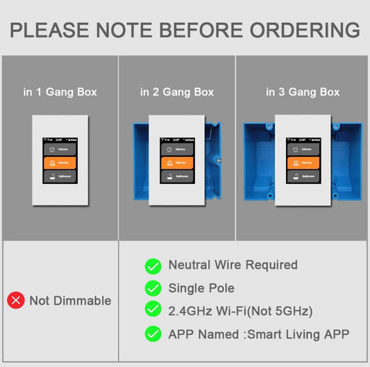LANBON Interruptor de luz inteligente de 1/2/3 pandillas de un solo polo, inalámbrico de 3 vías, necesita cable neutro, panel táctil LCD iluminado, malla WiFi