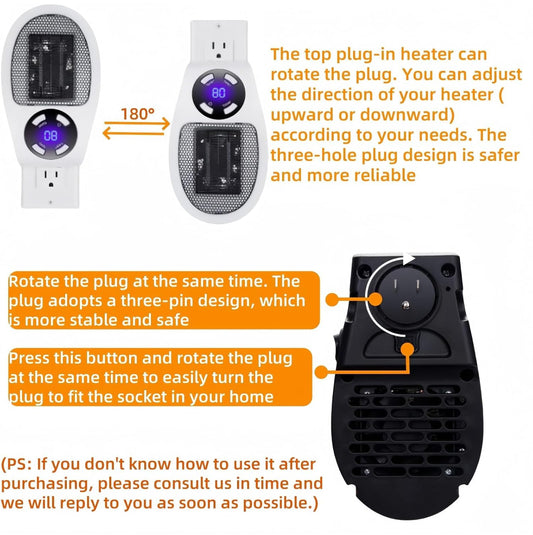 Calentador de enchufe cibernético para pared, calentador eléctrico portátil remoto de 450 W con termostato ajustable programable,