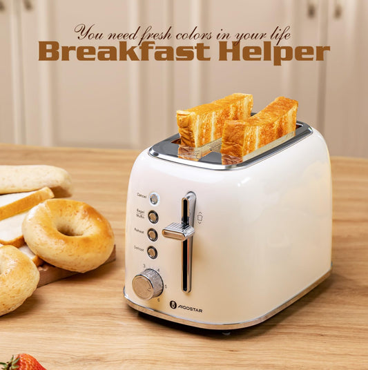Tostadora retro de 2 rebanadas de acero inoxidable, tostadora de pan extra anchas de 1.6 pulgadas con bagel