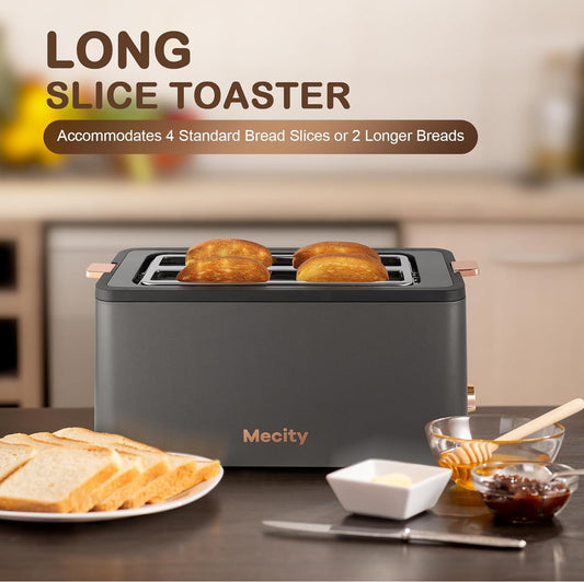 Tostadora de 4 rebanadas, tostadora de ranura larga con estante de calentamiento,