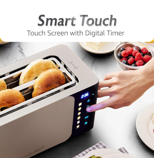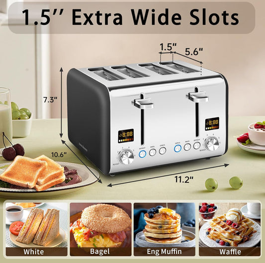 Tostadora digital de ranura larga de 4 rebanadas, ranuras de 1.5 pulgadas de ancho para panes gruesos y función de bagel, pantalla táctil LED,
