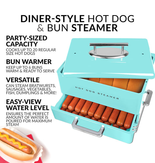 Nostalgia Vaporizador extragrande estilo comedor, 20 perros calientes y capacidad para 6 bollos