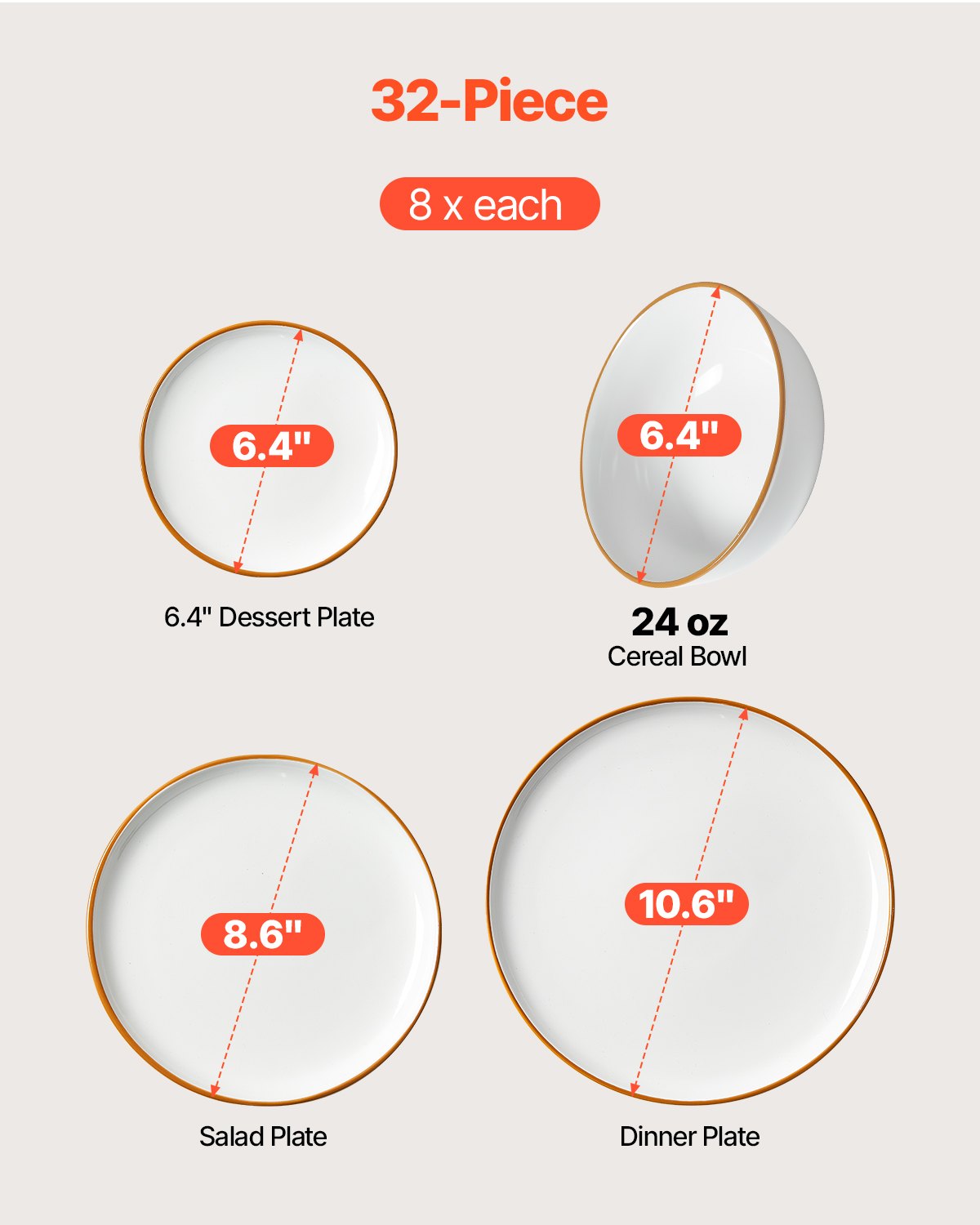 32 PCS Dinnerware Set Ceramic Plates And Bowls Sets Service For 8 White