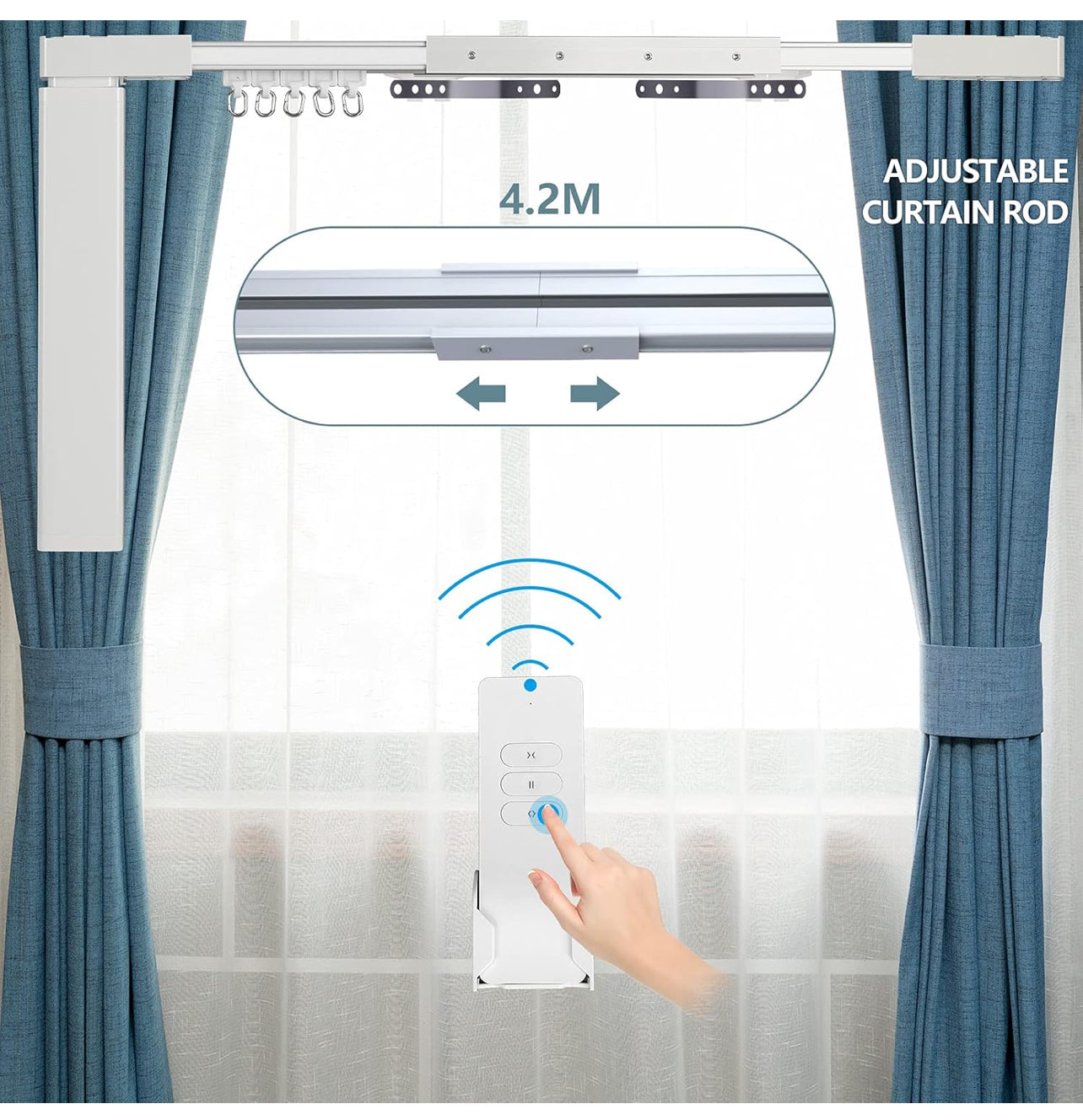 - Bajo nivel de ruido: tiene un motor ultra silencioso que permite una apertura y cierre ligeros; el nivel de ruido es de ≤ 10 decibelios así que no molestará tus actividades en interiores o en el dormitorio, la barra del riel funciona de forma suave y estable. El mejor compañero de interior para el hogar, la oficina, el hospital y otros lugares tranquilos.