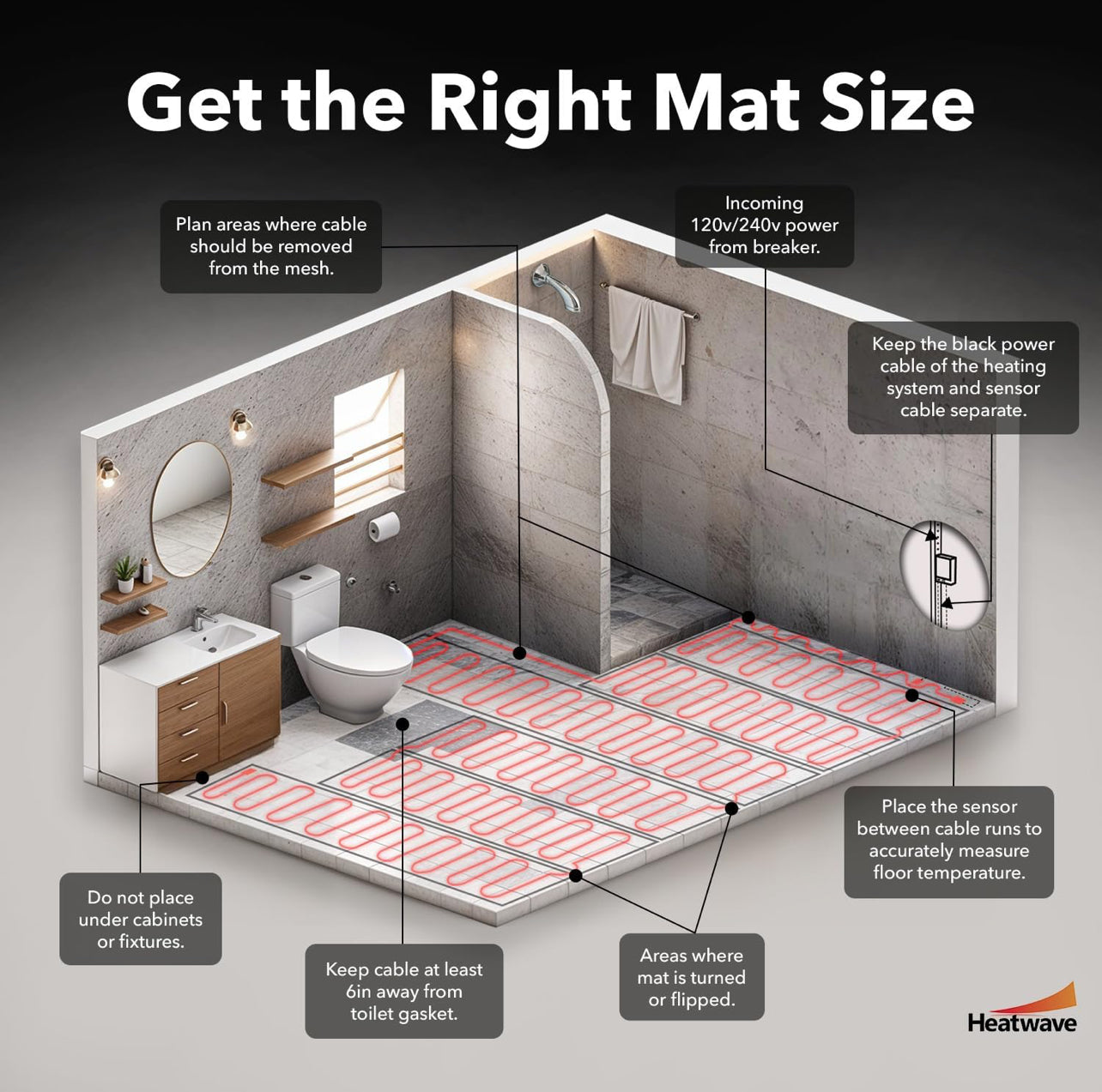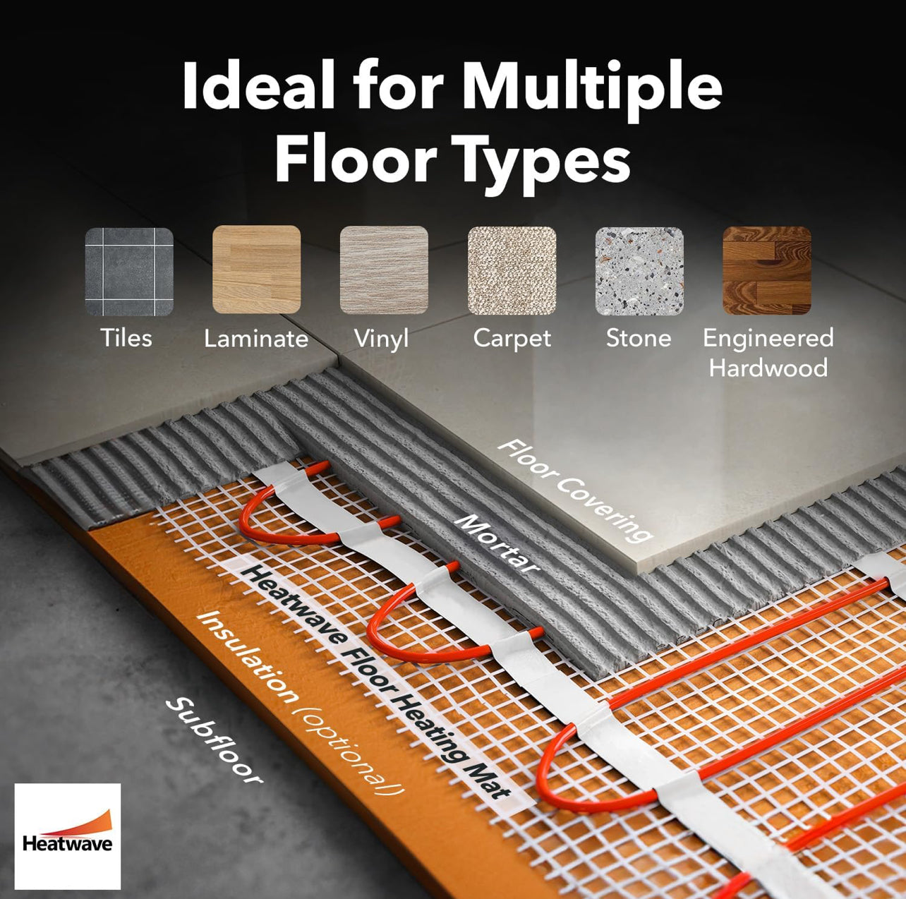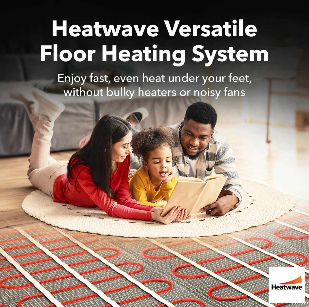 - IDEAL PARA MÚLTIPLES TIPOS DE PISO: Ya sea que lo instale debajo de baldosas, laminado o vinilo, la alfombrilla eléctrica de calefacción de suelo Heatwave es el kit ideal para calefacción por suelo. Nuestro sistema de calefacción por suelo radiante proporciona una calidez uniforme y cómoda, ya sea para tu kit de suelo de baño con calefacción o tus tapetes calefactables para el baño. Es una gran manera de traer comodidad a cualquier habitación con una alfombra radiante de calefacción por suelo radiante.