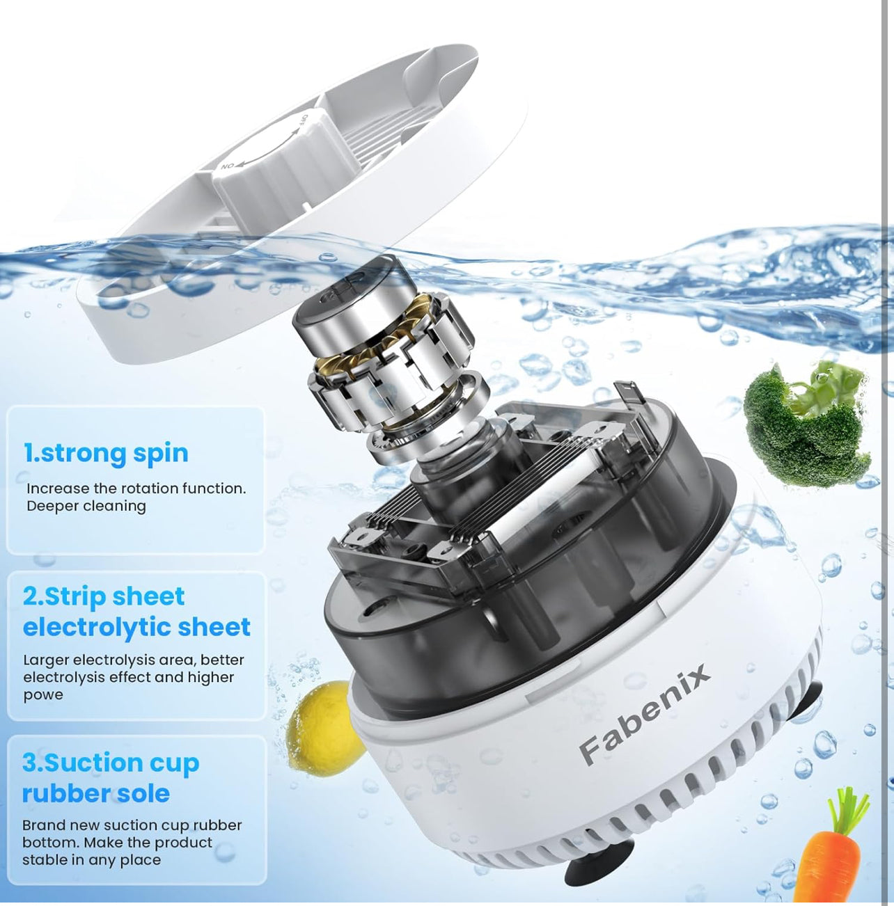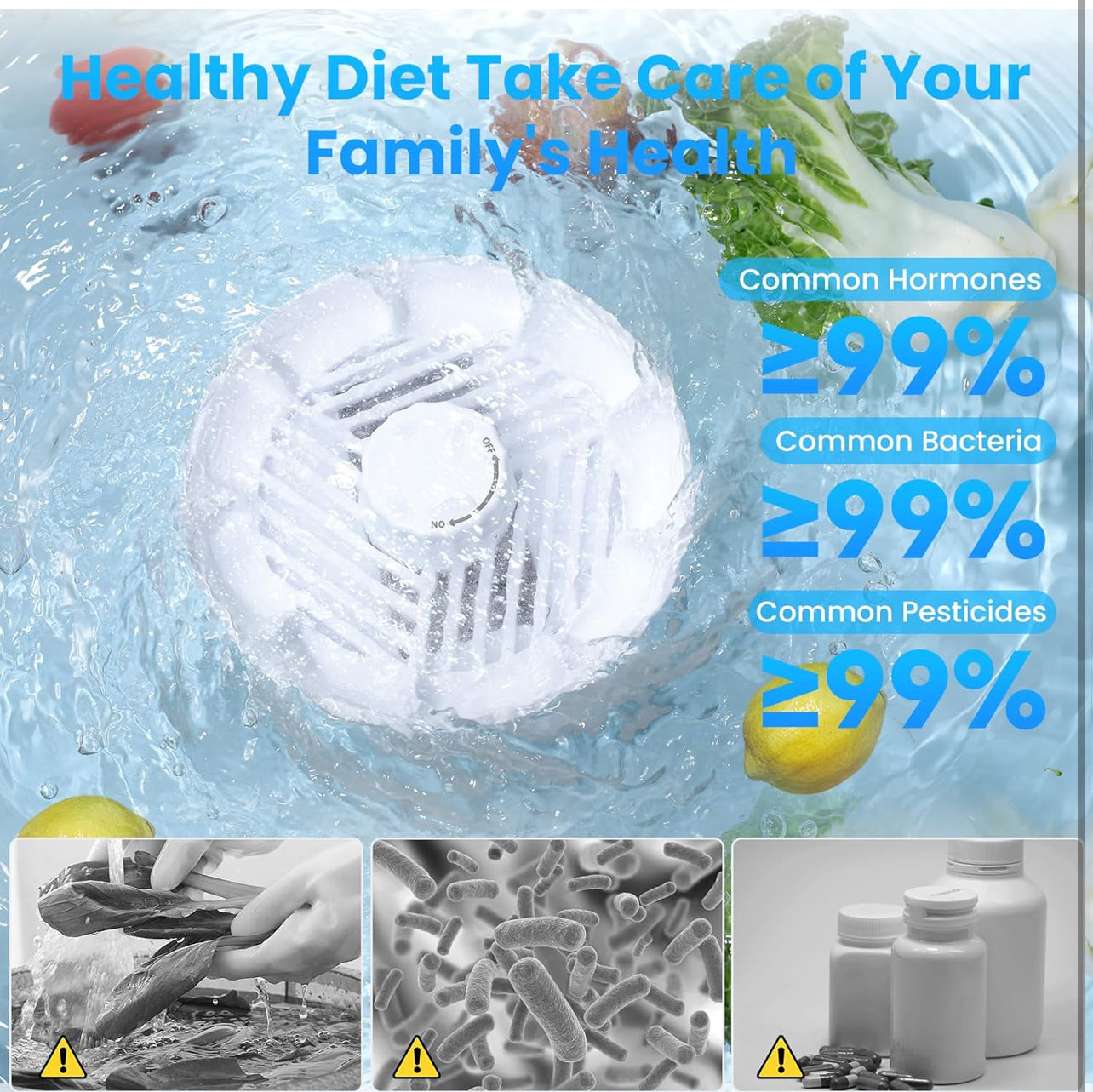 - Amplia y cómoda de usar: esta lavadora de frutas y verduras adopta una nueva tecnología inteligente. Se encenderá automáticamente cuando se coloca en el agua, y se detendrá automáticamente cuando salga de la superficie del agua para ahorrar energía. El purificador de frutas y verduras puede purificar frutas y verduras, productos acuáticos, carne, vajilla, granos, utensilios de cocina, vasos y joyas. Adecuado para todo tipo de contenedores.