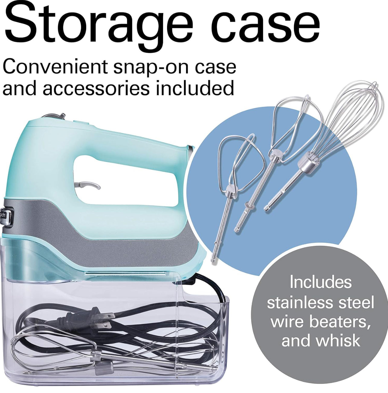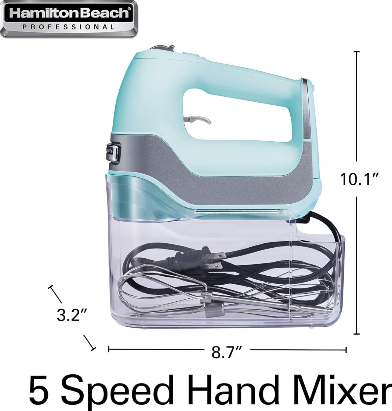 Hamilton Beach - Mezclador eléctrico profesional de 5 velocidades con caja de almacenamiento a presión y QuickBurst