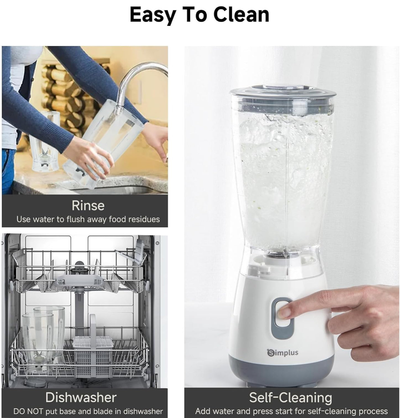 - Limpieza rápida y fácil: mantener tu licuadora limpia es sin esfuerzo. El frasco, los cortadores y la tapa se pueden enjuagar fácilmente con agua limpia. Solo tienes que separarlos y lavarlos a mano para un mantenimiento rápido y cómodo.