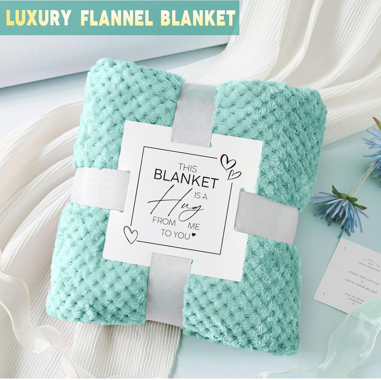 - Manta de franela cálida para mujer: hecha de franela de primera calidad, la manta es suave, acogedora y esponjosa, perfecta para relajarse. La cita en su tarjeta de regalo, "Esta manta es un abrazo de mí para ti", causará una impresión duradera. Los calcetines mullidos que acompañan añaden una capa adicional de calidez y comodidad. Un elegante y cálido regalo de cumpleaños y Navidad para mujeres, hermanas, madres y mejores amigas