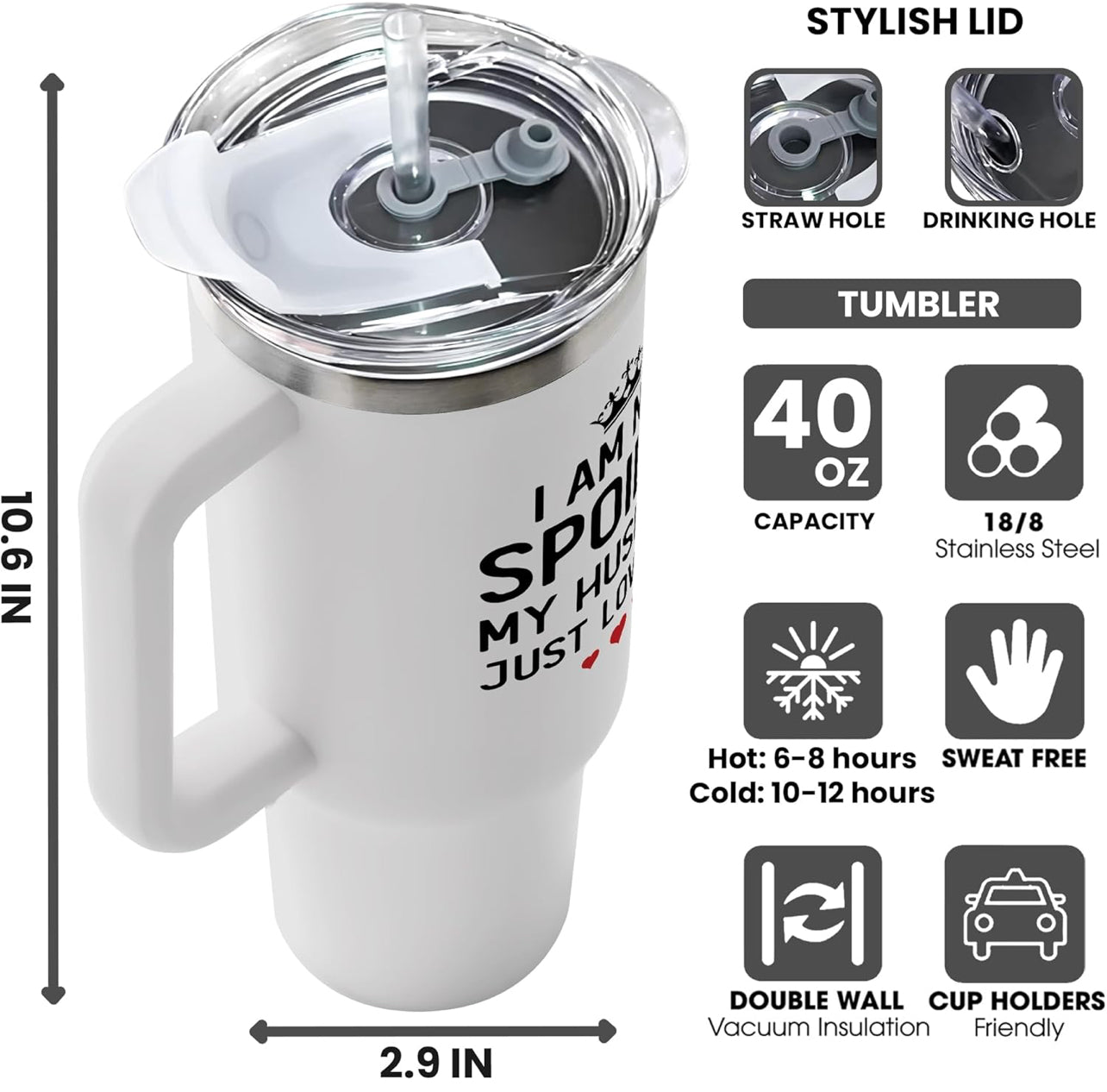 - Material de acero inoxidable seguro y duradero: hecho de material de acero inoxidable 18/8 de grado alimenticio, este vaso de regalo de cumpleaños para esposa es resistente, reutilizable, sin plomo, no es fácil de dañar, y cabe suavemente en la mayoría de los portavasos. La tapa sin BPA evita salpicaduras de líquidos, lo que te permite disfrutar de tu bebida de forma segura.