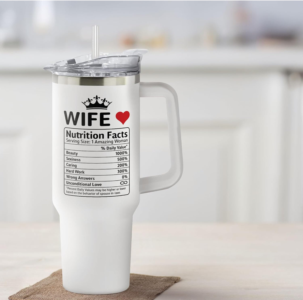 Tu esposa es amable, divertida y siempre está ahí para ti. Ella merece algo especial de vez en cuando. ¿Y qué mejor manera de mostrarle a tu esposa cuánto la aprecias que con un divertido vaso?