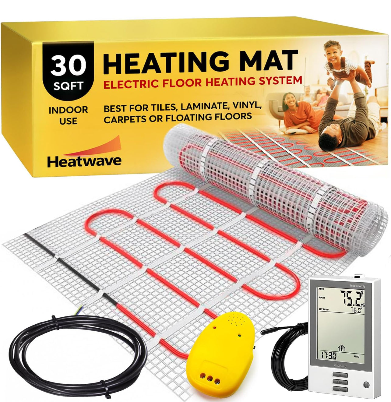 - IDEAL PARA MÚLTIPLES TIPOS DE PISO: Ya sea que lo instale debajo de baldosas, laminado o vinilo, la alfombrilla eléctrica de calefacción de suelo Heatwave es el kit ideal para calefacción por suelo. Nuestro sistema de calefacción por suelo radiante proporciona una calidez uniforme y cómoda, ya sea para tu kit de suelo de baño con calefacción o tus tapetes calefactables para el baño. Es una gran manera de traer comodidad a cualquier habitación con una alfombra radiante de calefacción por suelo radiante.