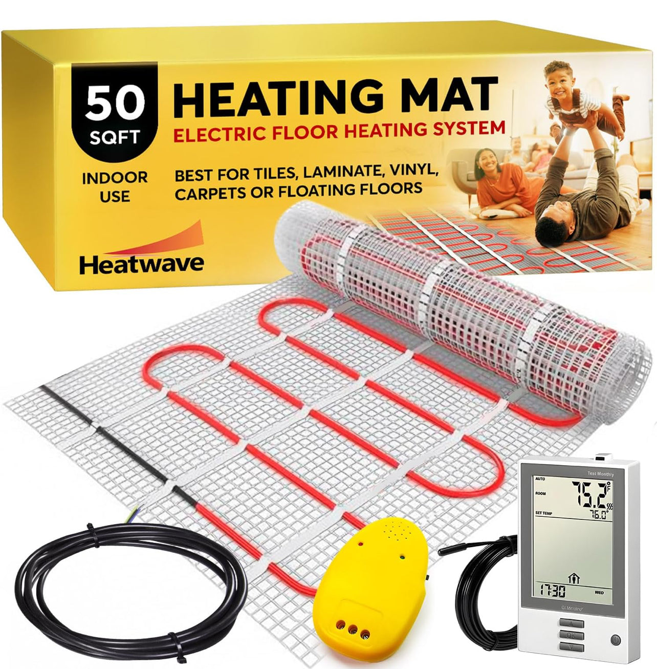 - IDEAL PARA MÚLTIPLES TIPOS DE PISO: Ya sea que lo instale debajo de baldosas, laminado o vinilo, la alfombrilla eléctrica de calefacción de suelo Heatwave es el kit ideal para calefacción por suelo. Nuestro sistema de calefacción por suelo radiante proporciona una calidez uniforme y cómoda, ya sea para tu kit de suelo de baño con calefacción o tus tapetes calefactables para el baño. Es una gran manera de traer comodidad a cualquier habitación con una alfombra radiante de calefacción por suelo radiante.